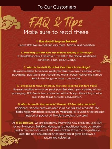 We thrive on producing better tastes and quality food with affordable pricings, especially bakkwas to cater to all generations.